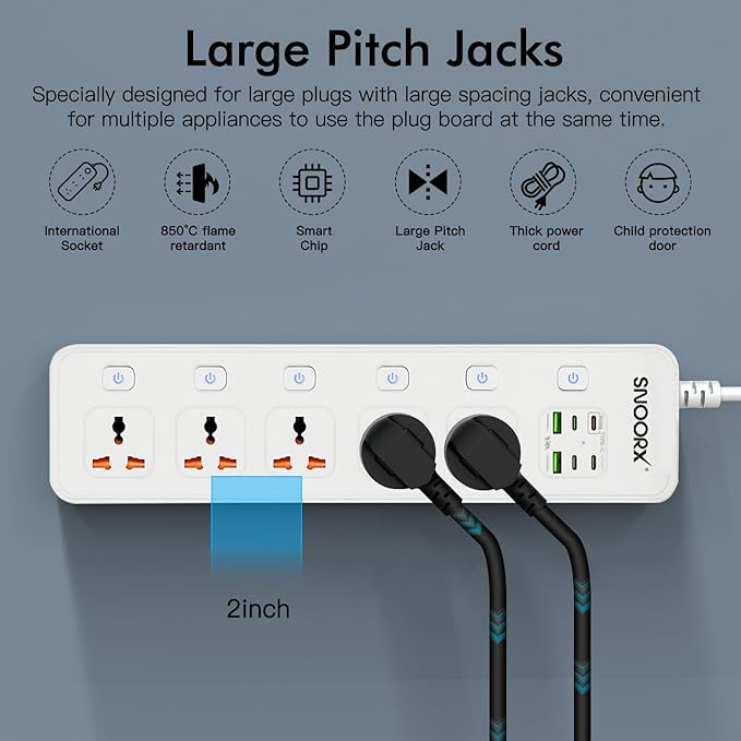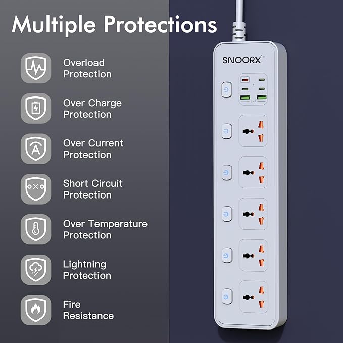 - Child protection door: Each socket is equipped with an independent valve, which is not easy to be accidentally touched by normal force, so as to avoid accidental electric shock for curious bab