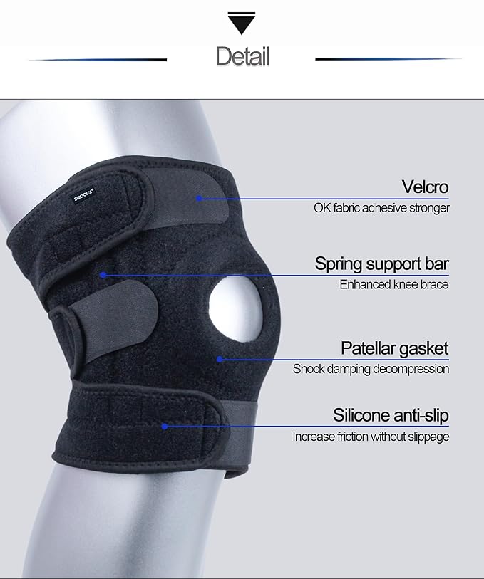 SNOORX knee brace with patella support and flexible springs is a crucial aid designed to provide comprehensive support and stability to the knee joint. Featuring innovative design elements such as flexible springs and targeted patella support, this brace offers unparalleled comfort and protection for individuals dealing with knee-related issues. Whether it’s knee pain, patellar tendonitis, or instability, this brace is engineered to alleviate discomfort and promote healing.